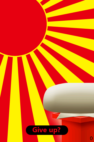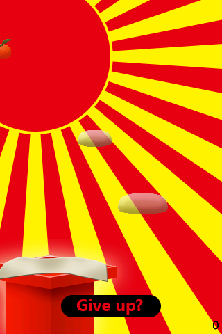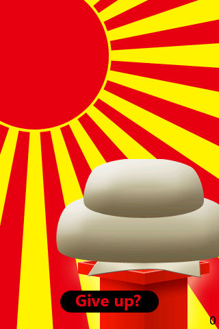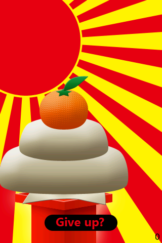 右から流れてくる台の上に3段重ねの鏡餅を作っていく。画面をタップするごとに餅が1段ずつ重ねられていく。