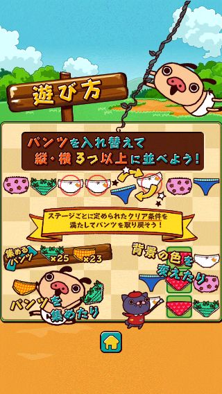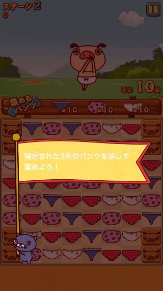 パンツを入れ替えて3つ以上並べて消して、各ステージのクリア条件を達成しよう!