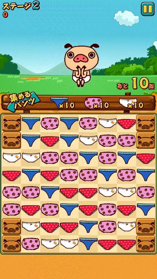 基本操作は上下左右のパンツを入れ替えて、3つ以上揃えて消していくオーソドックスなマッチ3タイプ。