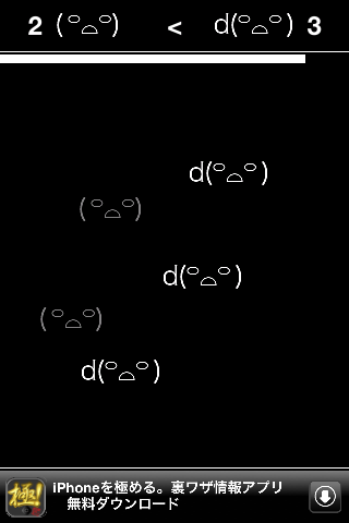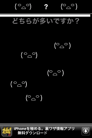 "( ꒪⌓꒪)" と "(꒪⌓꒪ )" どちらが多いか当てるゲームです。