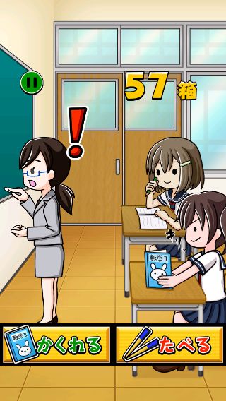 先生に『!』が表示されたら、急いで「かくれる」ボタンを押してごまかそう。
