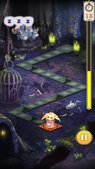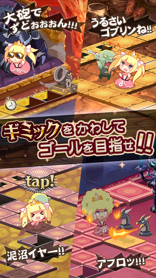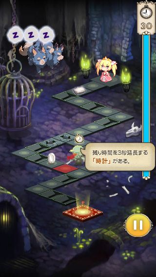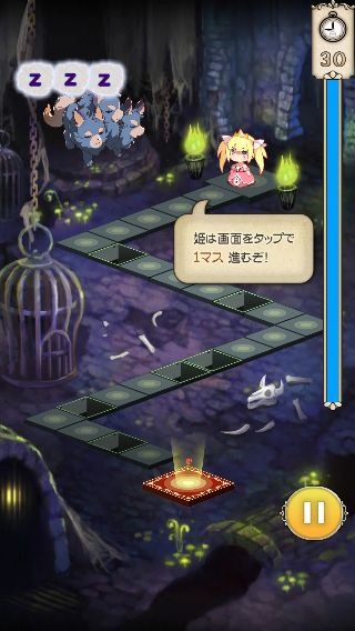 画面はクォータービューで構成されていて、姫をタップすると1マス、フリックでジャンプさせると2マス進む。