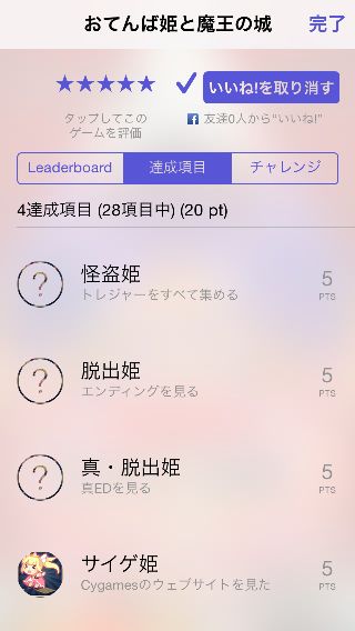 iPhone版はGameCenterのリーダーボードと達成項目に対応している。