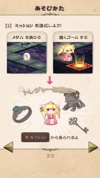 各ステージで定められたミッションをクリアすると★を獲得でき、星の総数によってトレジャーを手に入れる事ができる。