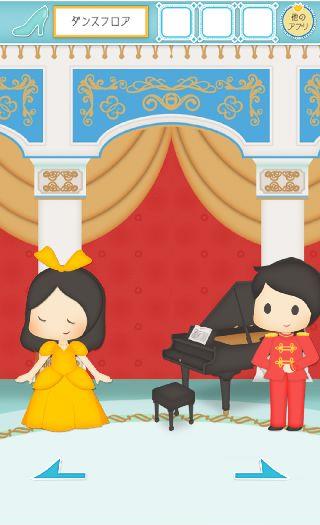 舞踏会に来たシンデレラは時間を忘れて楽しいひとときを過ごします。