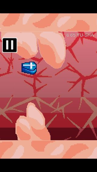 指を離すと落下していく勇者をうまく操作しながら、障害物を避けながらひたすら進んでいこう。