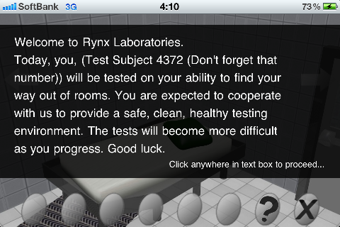 Rynx Escape the Room 無料 0 評価する 送信する 10の部屋の脱出テストを次々と受けていく異色の脱出ゲーム。 簡単な仕掛けから順に解いていき、後半の部屋では英語によるテストを受けるので万人受けはしないかも? ※ 公開停止 全部で10個の部屋が用意されており、1つクリアするごとに次が開放されていく。 オープニングを含め全て英語で展開される。この『4372』という数字は後半で必要になってくる。 攻略その1 攻略その2 攻略その3 攻略その4 攻略その5 攻略その6 攻略その7 攻略その8