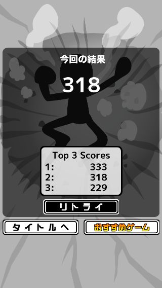 スコア300を超えたあたりで高いビルが出てきたり、間隔が狭くなってきたりと難易度が一気に上昇する。
