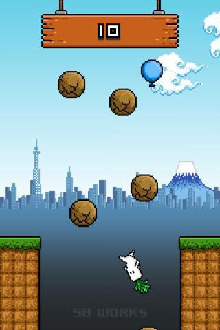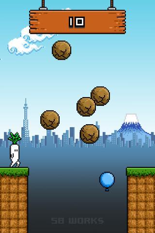飛ぶ回数が増えるごとに落ちてくる岩の数が増え、下からは風船が上がってきます。