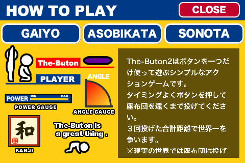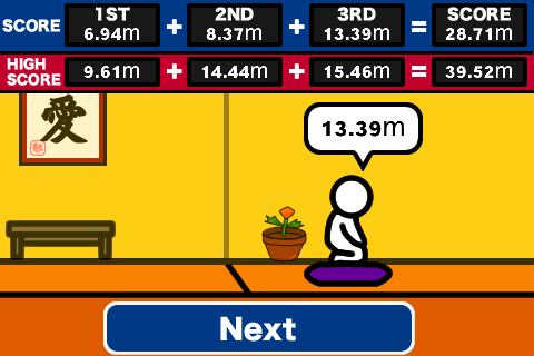 タイミングよくボタンを押して座布団を遠くまで投げていく。
