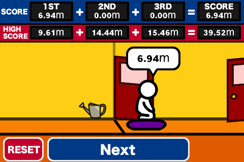 プレイは3回のジャンプの飛距離を合計して競われる。