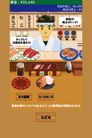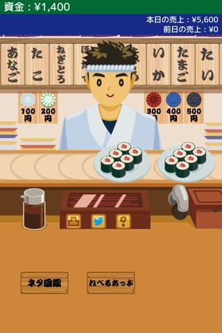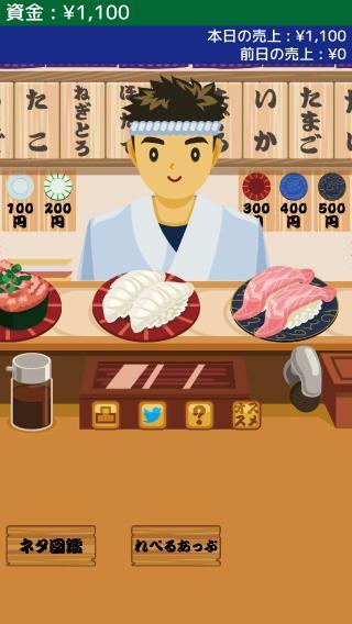 寿司を売って資金を増やして、より効率的に売上を伸ばすためにレベルアップをしよう!