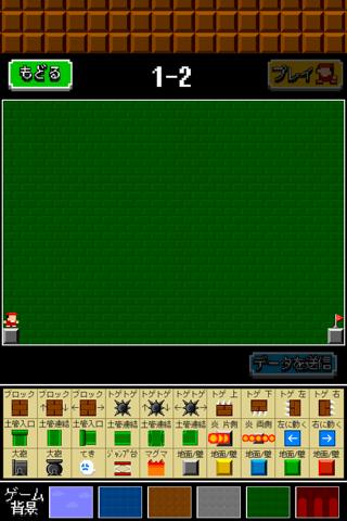 背景から選択して、地面や敵キャラなども配置が自由なので、難易度はあなた次第だ!