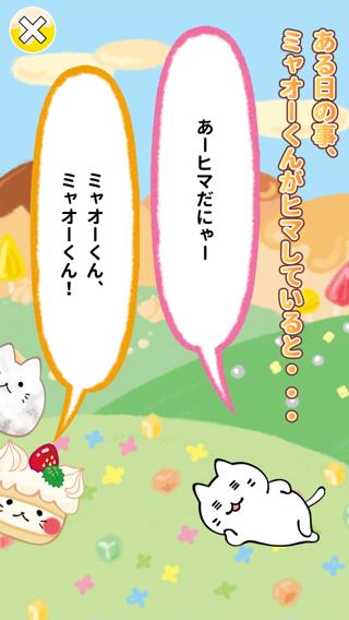 ある日の事、ミャオーくんがヒマしていると、おかしねこ達がやってきて・・・