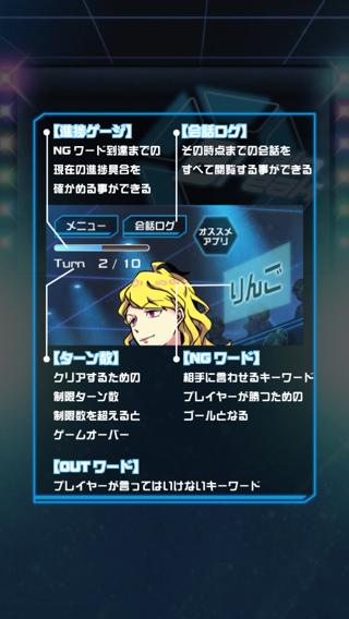 制限ターン内に「NGワード」を挑戦者から言わせる事ができなければゲームオーバーとなってしまう。