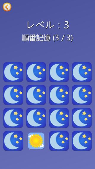 順番記憶トレーニングは、4×4エリアのパネルが順番に変わるので、