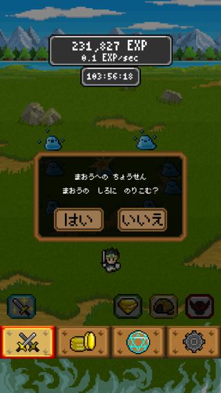 いろいろな方法で経験値を上げて、魔王に挑戦します。