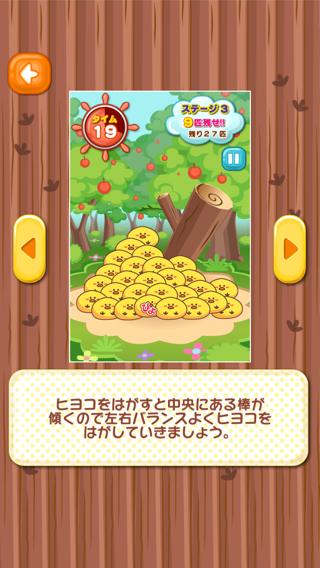 可愛く鳴いているヒヨコを動かして、ぎりぎりの駆け引きを楽しむ新しい棒たおしだ。