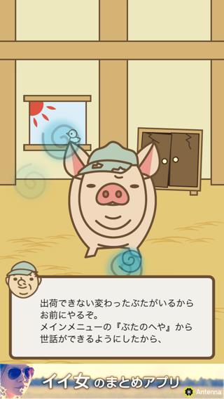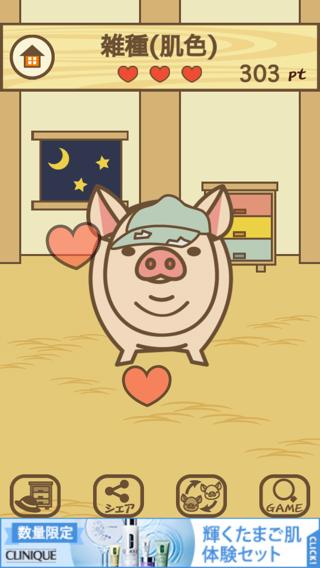 「ぶたのおへや」では、ぶたをなでなでしたり、着せ替えをしたり……