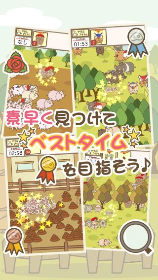 スワイプでぶたをさがして、ぶたをみつけたらタップ