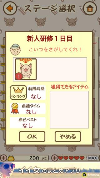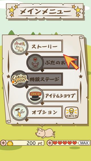 ステージによっては、目標タイム達成でぶたや着せ替えアイテムが手に入っちゃいます。