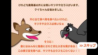 みんながおいしそうな鶏に育っていくなか、ケイちゃんは翼ばかり大きくなっていきます。さらに、まわりのみんなにいじめられていたため、毎日満足にご飯も食べられません。
