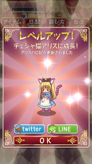 経験値が最大まで貯まると、アリスの姿が変化します。