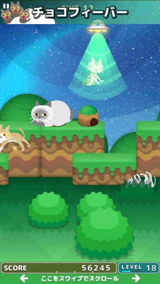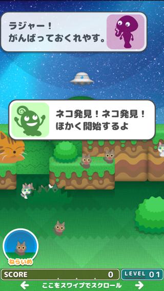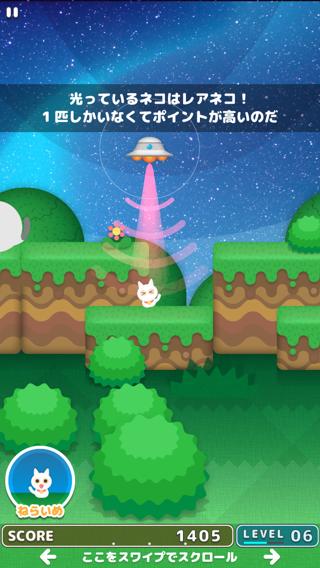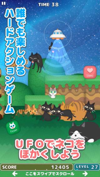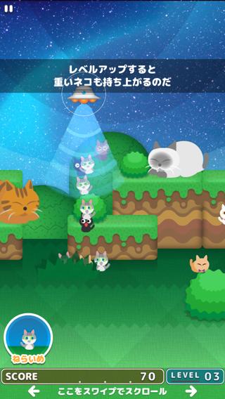画面をタッチしてUFOのビームでネコを吸い上げるだけの簡単なルール。