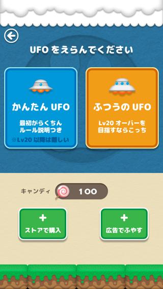 初めにUFOの種類を選択できるので、初心者でも時間制限なしで