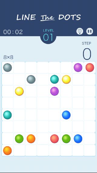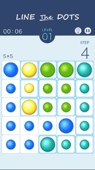 同じ色のDotsを指でなぞって、全てのマスを使って埋めていくパズルゲーム。