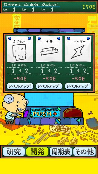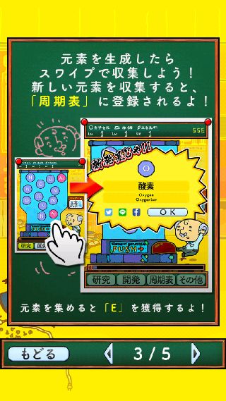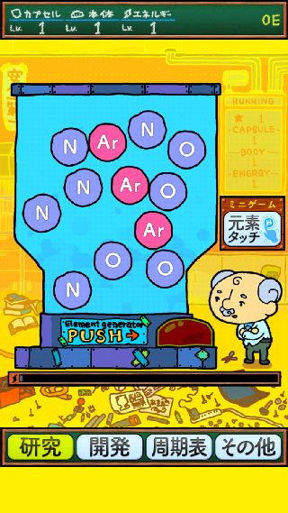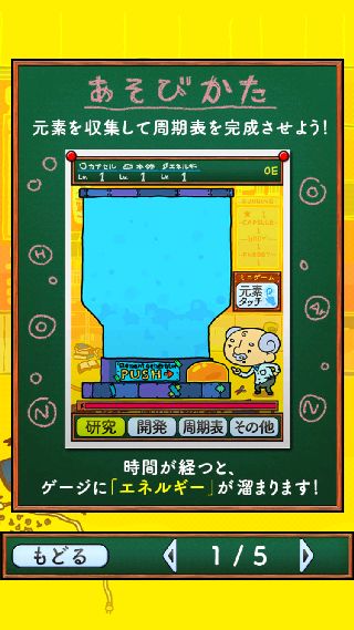元素を収集して周期表を完成させるのが目的の、放置系収集ゲーム。
