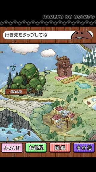 なめこたちをマップ上の色々な場所におさんぽに出そう。何十匹ものなめこがみんなでおさんぽに行く姿は圧巻!