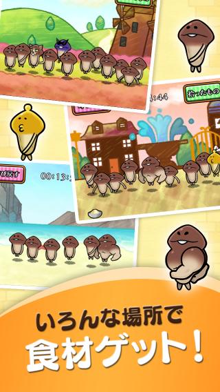 なめこにあげると、レベルアップして集められる食材が増える。