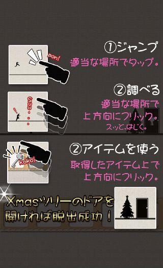 クリスマスツリーのあるドアまで辿り着いたら、「カギ」を上方向にフリック!