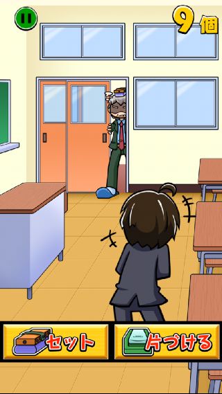 『片づける』ボタンを素早く押して、セットした黒板消しを回収しよう。