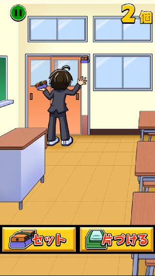 スタートしたら、とにかく『セット』を連打で黒板消しをドアに挟みまくろう!