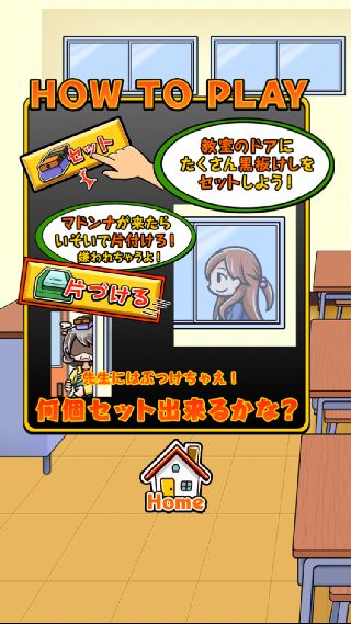 黒板消しをひたすらドアに挟んで、先生に当てていくカジュアルアクションゲーム。