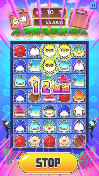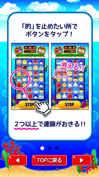 動く「的」をタップで止めて、海の仲間たちを繋げていこう!