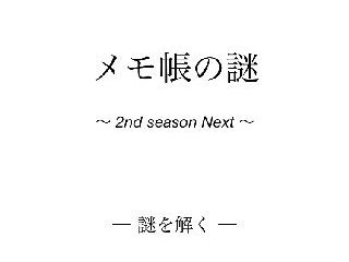 メモ帳の謎 2nd season Next - 新感覚謎解きゲーム - 無料 0 評価する 送信する 新感覚謎解きゲーム、メモ帳の謎! オールド、オルネのさらなる活躍、組織同士の争い、そして・・・。 メモ帳を舞台にした、新感覚ミステリー「メモ帳の謎」の第3弾は、ライナス編となるエピソード7よりスタート! ※ 公開停止 ストーリーは前作からの続き「31話」からとなっている。 謎解きではなくストーリーを楽しみたい場合は、前作・前々作からのプレイを推奨。 エピソード7:青い衝撃 メモ帳の謎31