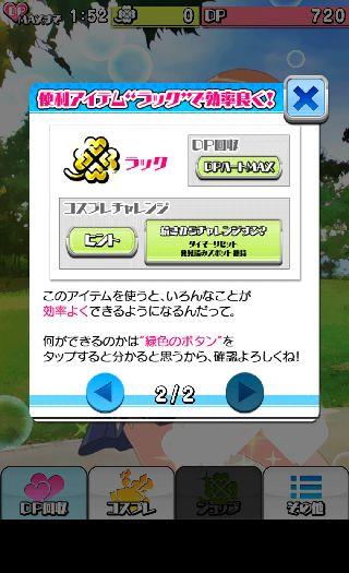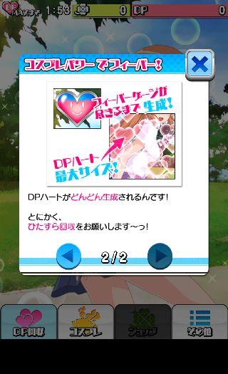 「DP」が集まってきたら、画面下の『コスプレ』ボタンを押してミニゲーム「コスプレチャレンジ」に挑戦しよう!