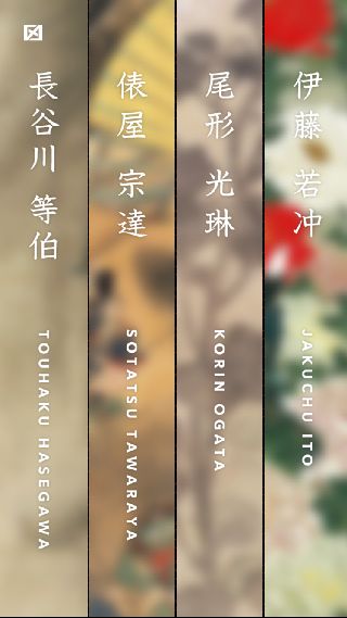 江戸時代に活躍した11人の絵師の絵画を、スマートフォン上で一番美しく魅せるために一枚ずつ再編された極上の壁紙アプリ。