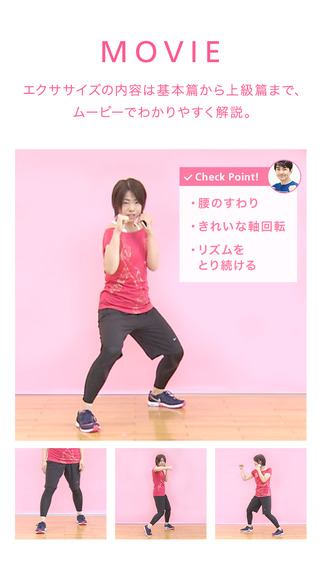 エクササイズの内容は、基本篇から上級篇までムービーで分かりやすく解説してくれる。