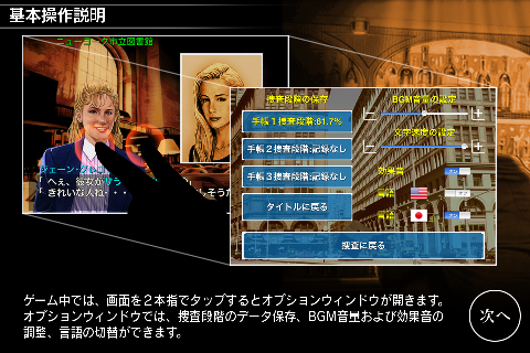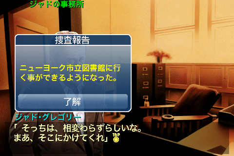 話の中で重要なキーワードが出てくると、捜査報告のウインドウが出てゲームが進展する。