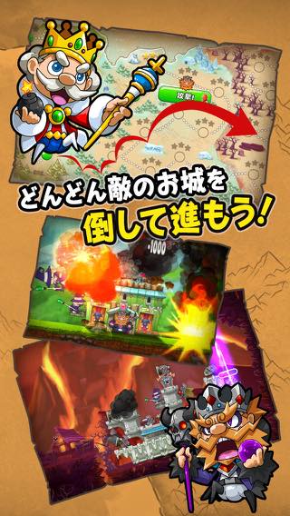 自分の城を築きながら、敵の王様の城を壊していこう!