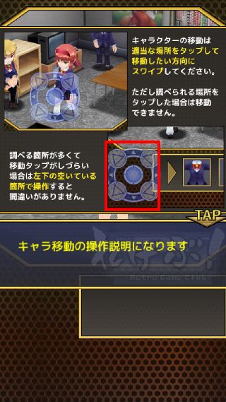 気になる場所や人物は、タップする事で調べたり話しかけたりできる。