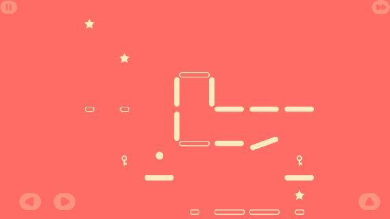 飛び跳ねるボールを操作して、星を集めてゴールを目指すアクションパズルゲーム。