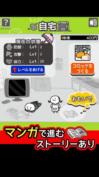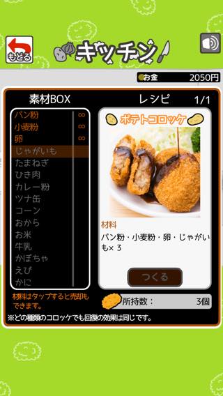 体力がなくなる前に、まかないのコロッケを食べて回復しよう。