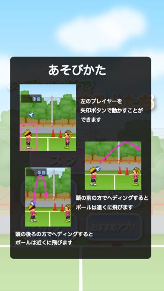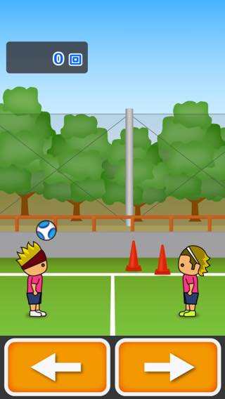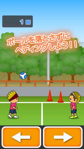 左右のボタンでプレイヤーを動かして、ボールを地面に落とさないようにヘディングしよう。