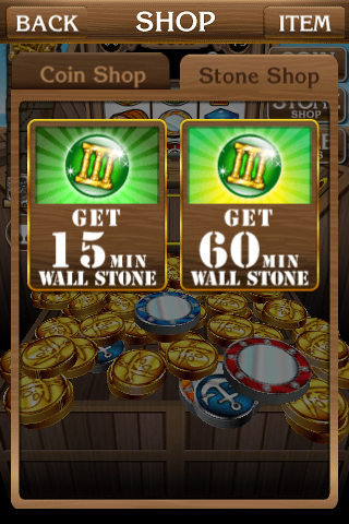 ストーンショップでは長時間のウォールストーンも購入可能。お手軽にコインを獲得したい時は、アプリダウンロードで獲得することも出来る。