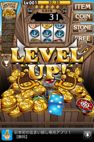 通常のコイン落としとは別に、スロットを揃えることで様々なお宝アイテムをゲットできる。